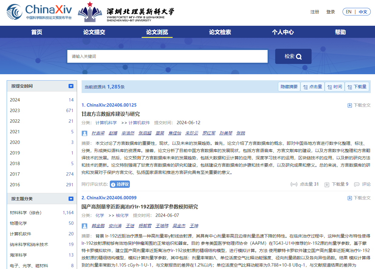 ChinaXiv is an open repository and distribution service for scientific researchers in the field of natural science, which accepts scholarly preprints and conditionally accepts published articles. It is maintained and operated by National Science Library, Chinese Academy of Science.